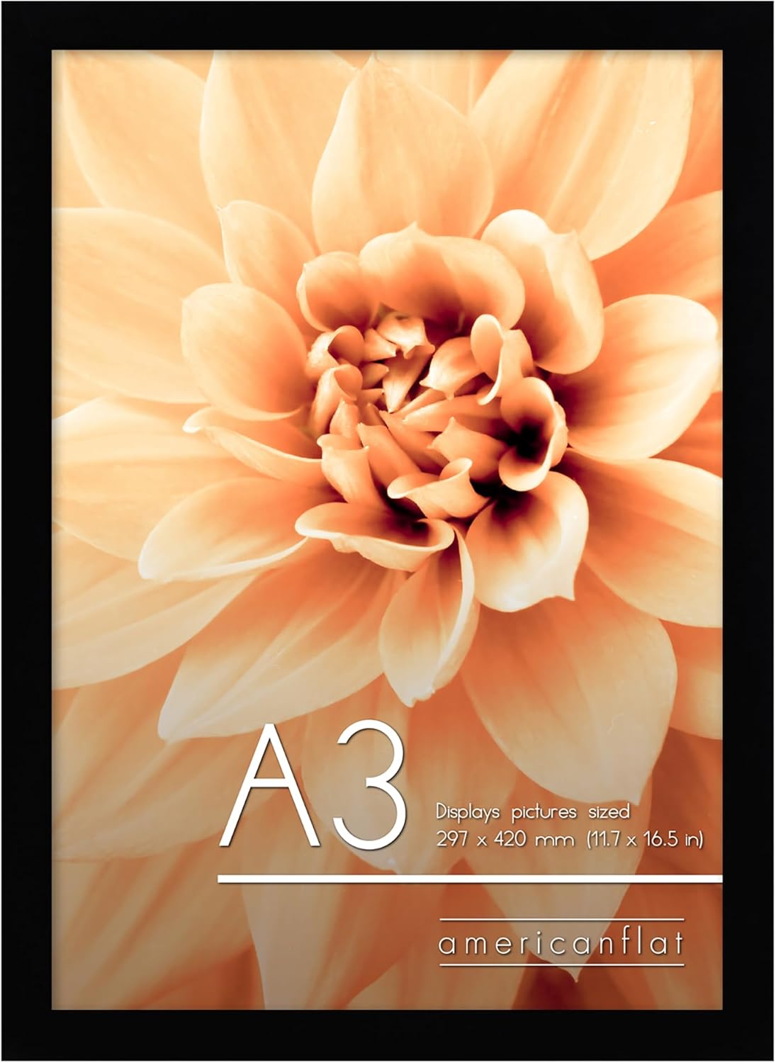 - Design: Black A3 frame; comes with hanging hardware for hassle-free display in both horizontal and vertical formats to hang flat against the wall.