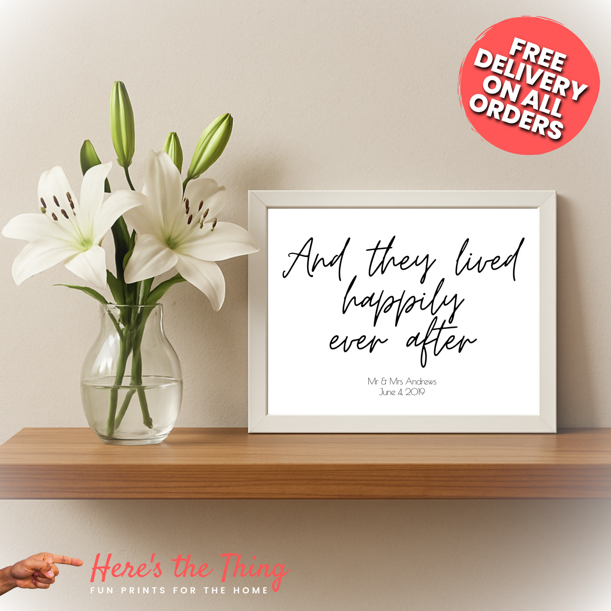 Whether you're decorating your own home or searching for the perfect gift that your friends and family will love, the 'And They Lived Happily Ever After' print is the ideal choice to enhance any wall decor. Plus, with fast and free delivery, your new print will be with you in no time!