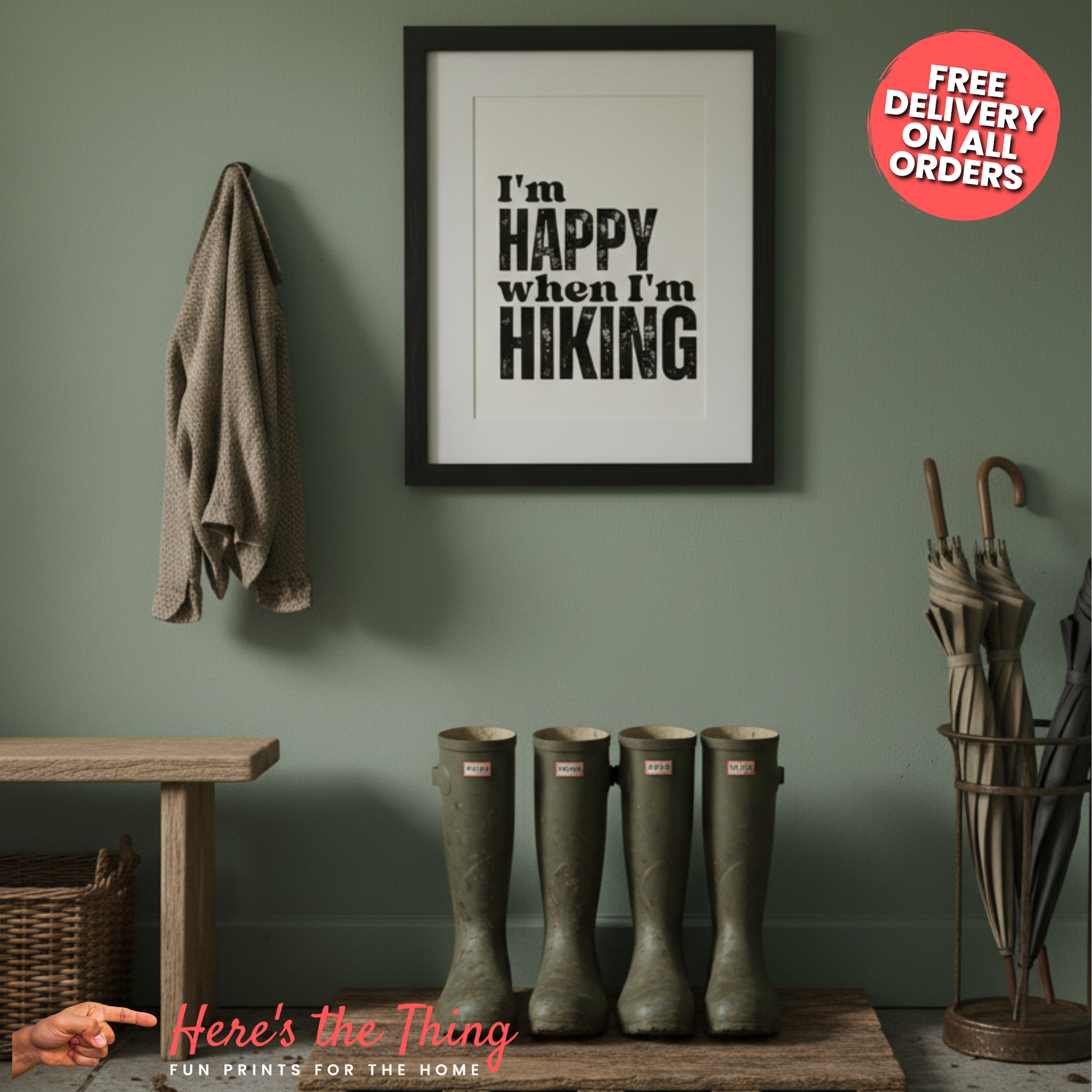Whether you're decorating your own home or searching for the perfect gift that your friends and family will love, the 'Happy When I'm Hiking' print is the ideal choice to enhance any wall decor. Plus, with fast and free delivery, your new print will be with you in no time!