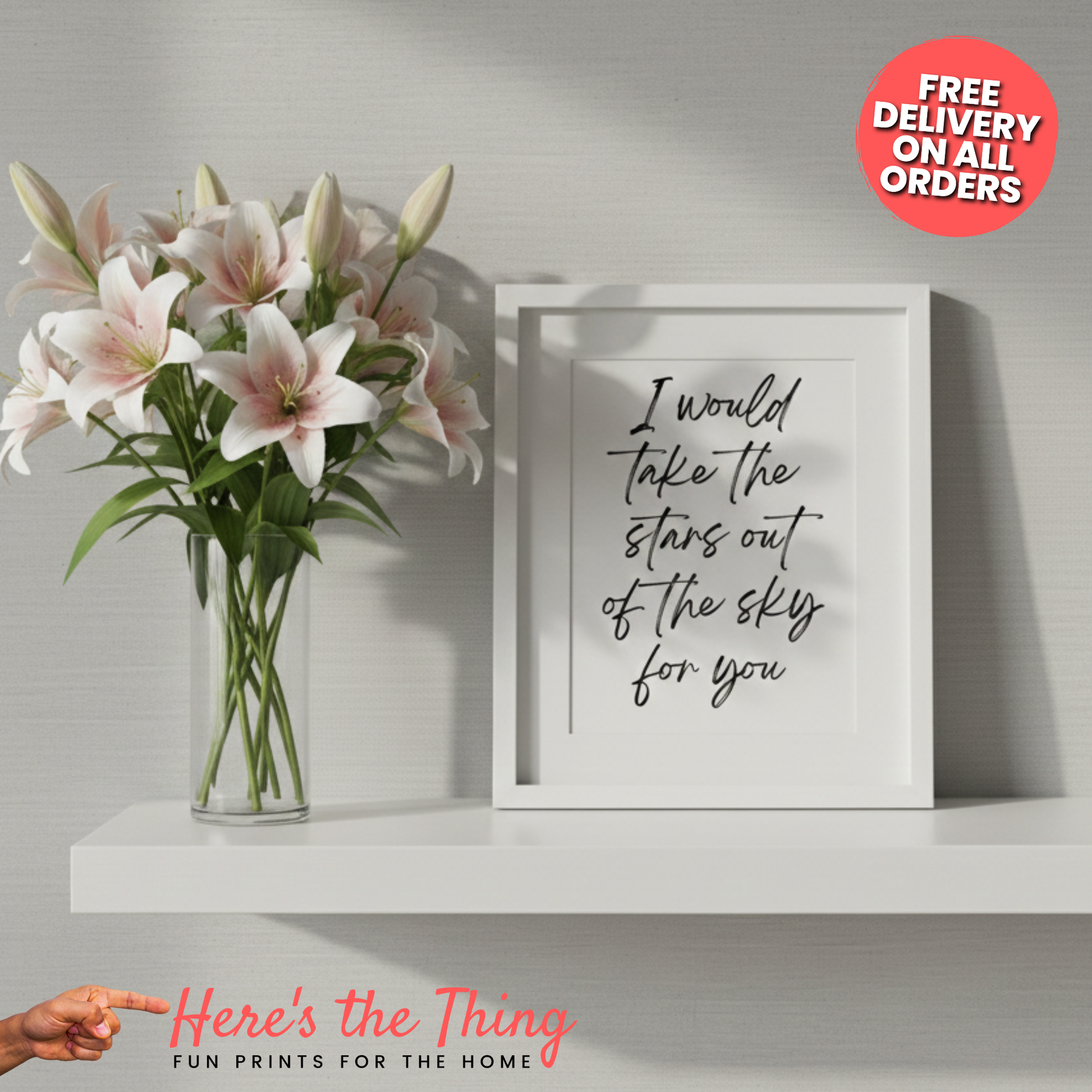 Whether you're decorating your own home or searching for the perfect gift that your friends and family will love, the 'I Would Take The Stars Out Of The Sky For You' print is the ideal choice to enhance any wall decor. Plus, with fast and free delivery, your new print will be with you in no time!