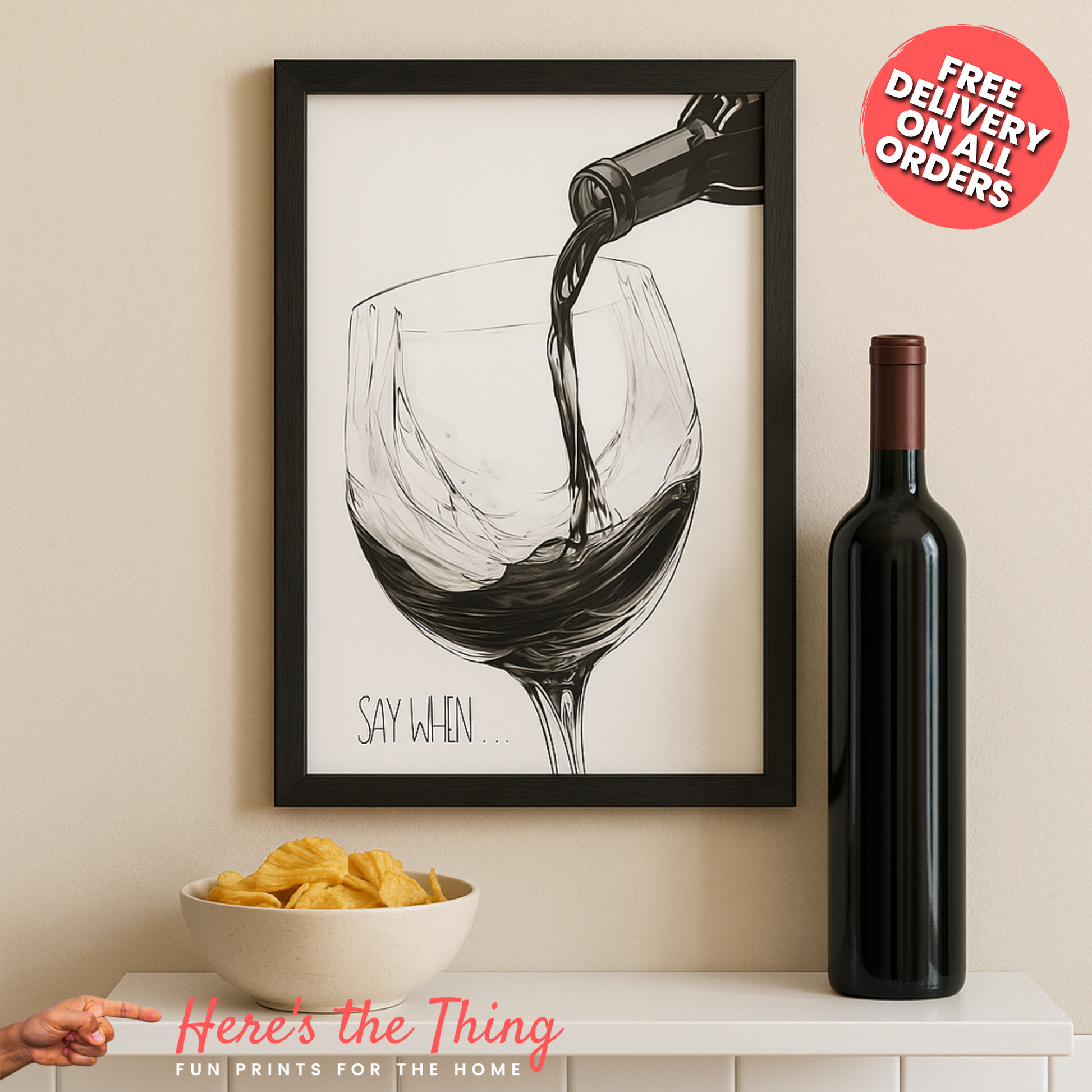 Whether you're decorating your own home or searching for the perfect gift that your friends and family will love, the 'Say When...' print is the ideal choice to enhance any wall décor. Plus, with fast and free delivery, your new print will be with you in no time!