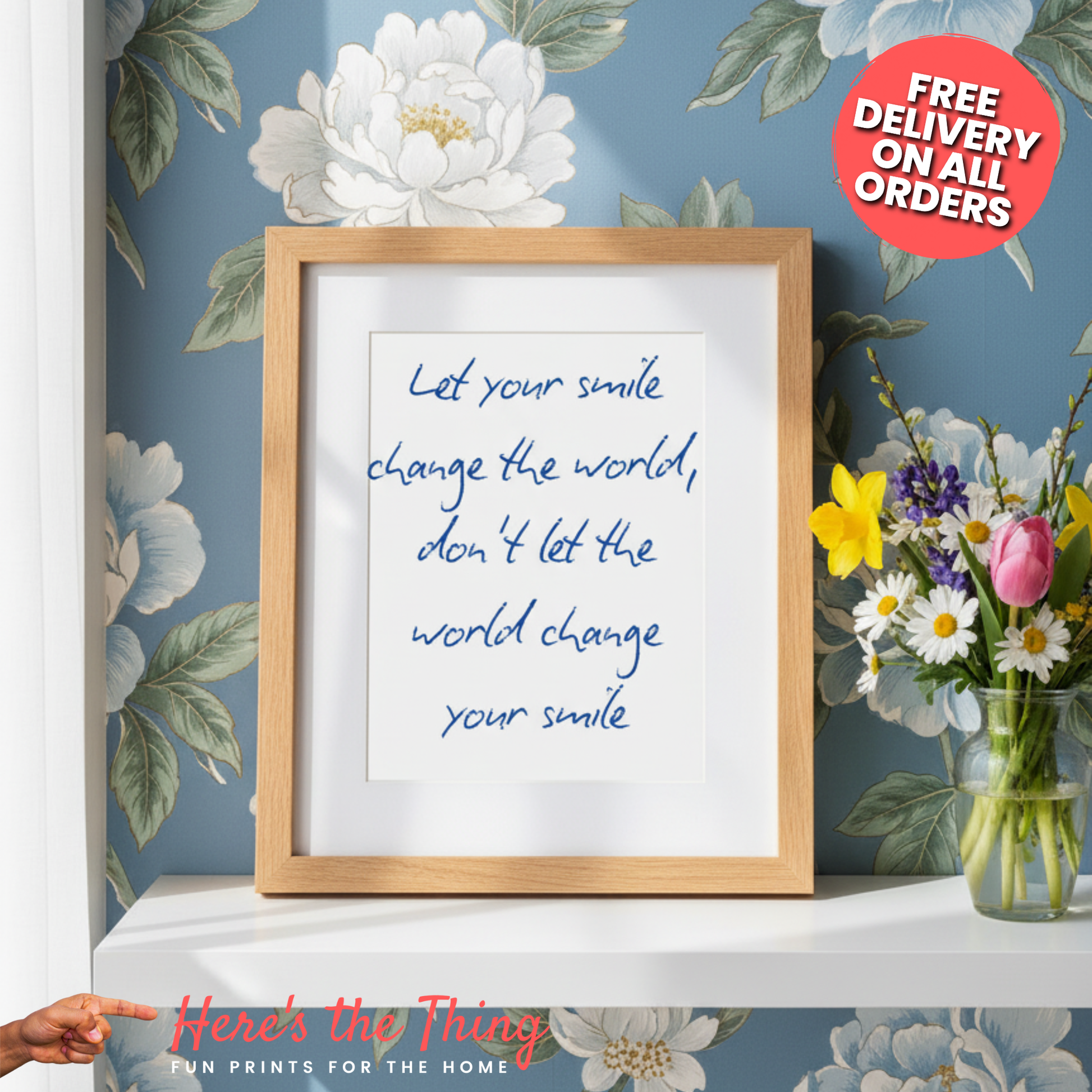 Whether you're decorating your own home or searching for the perfect gift that your friends and family will love, the 'Smile Change The World' print is the ideal choice to enhance any wall décor. Plus, with fast and free delivery, your new print will be with you in no time!