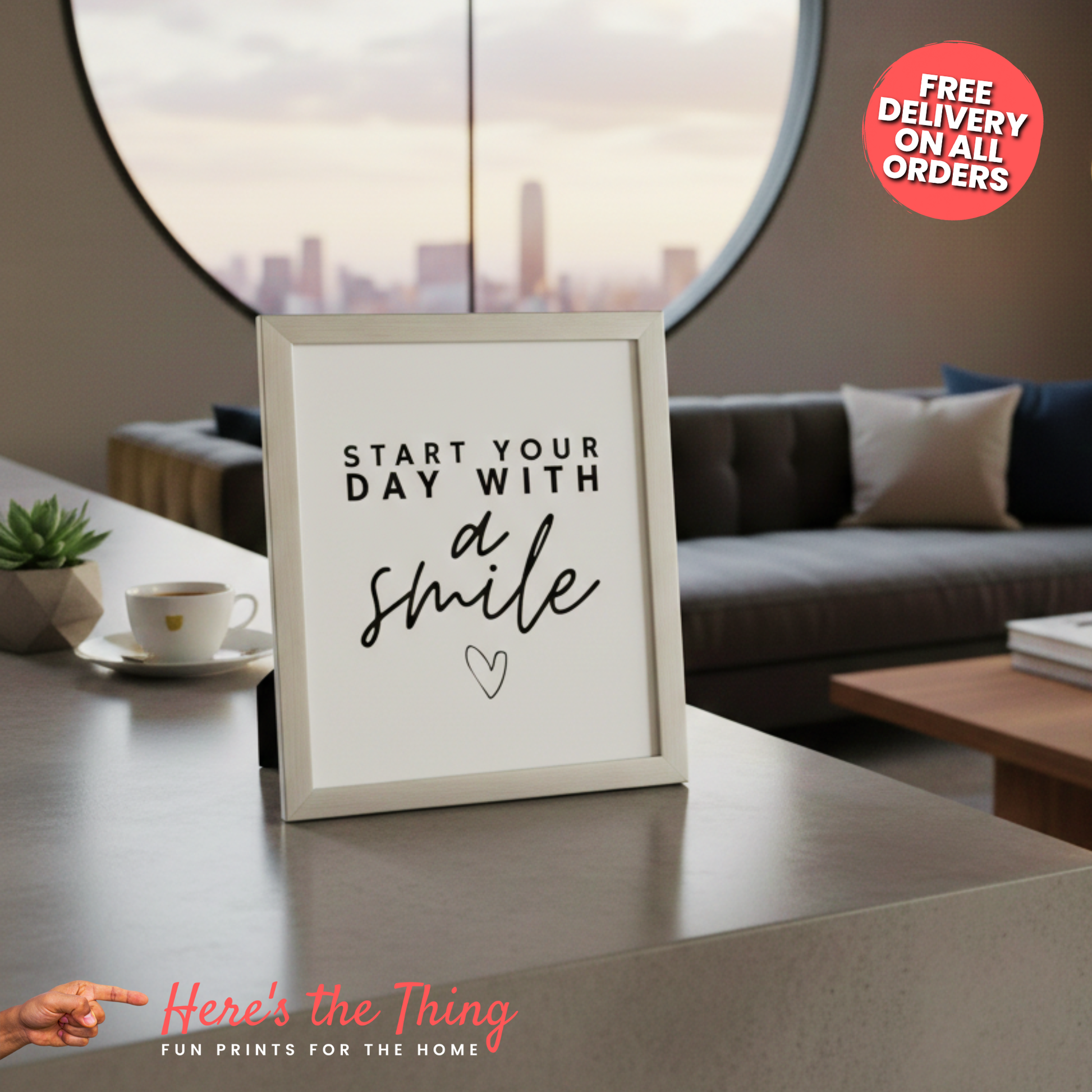 Whether you're decorating your own home or searching for the perfect gift that your friends and family will love, the 'Start Your Day With A Smile' print is the ideal choice to enhance any wall decor. Plus, with fast and free delivery, your new print will be with you in no time!