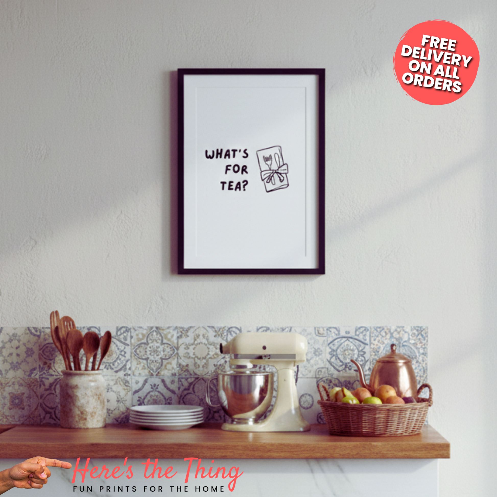 Whether you're decorating your own home or searching for the perfect gift that your friends and family will love, the 'What's For Tea?' print is the ideal choice to enhance any wall décor. Plus, with fast and free delivery, your new print will be with you in no time!